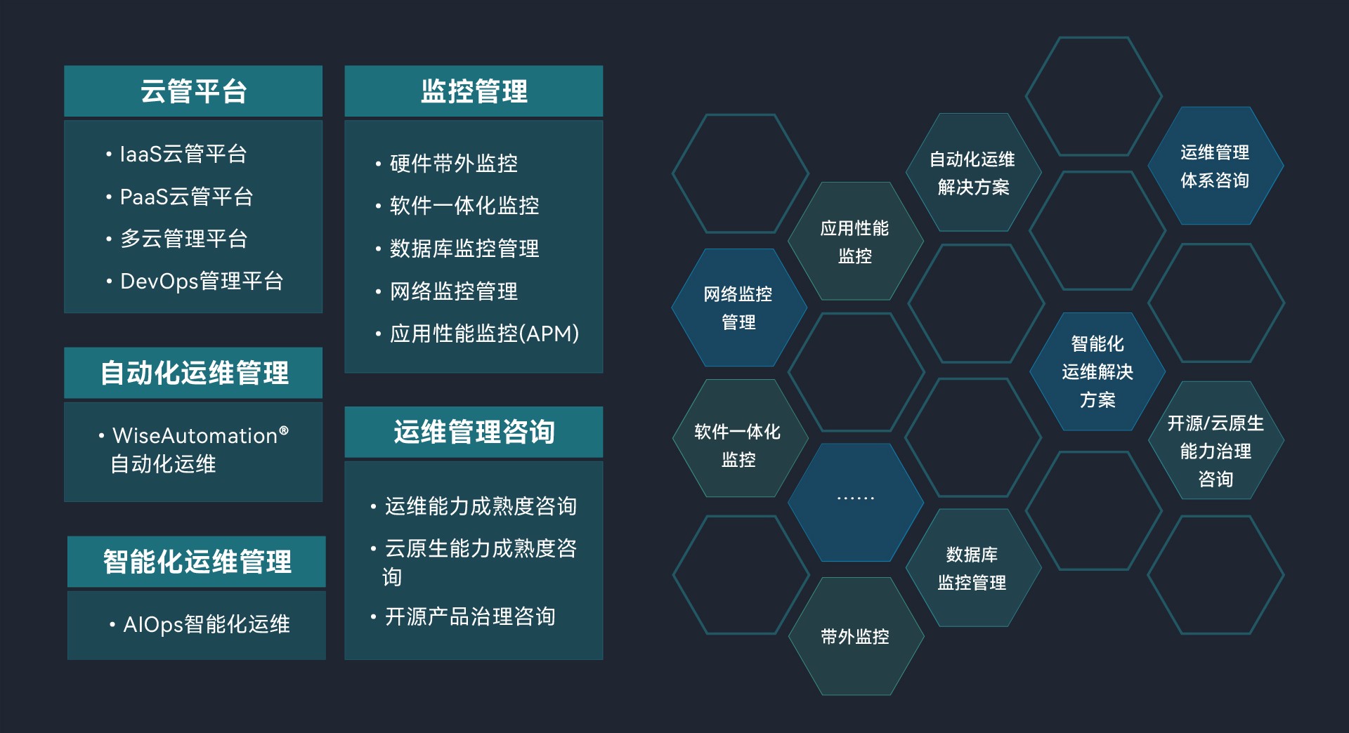 乐动在线官网在运维管理产品领域提供硬件、软件监控、自动化运维、智能化运维和安全管理等产品解决方案,帮助客户实现对基础设施、应用程序和服务的全方位监控、反馈和管理。同时,乐动在线官网在运维支撑平台领域提供云、大数据和智能平台中台解决方案,为客户打造基础设施管理平台,确保客户在各类运维需求下,都能够得到充分的支撑和保障。