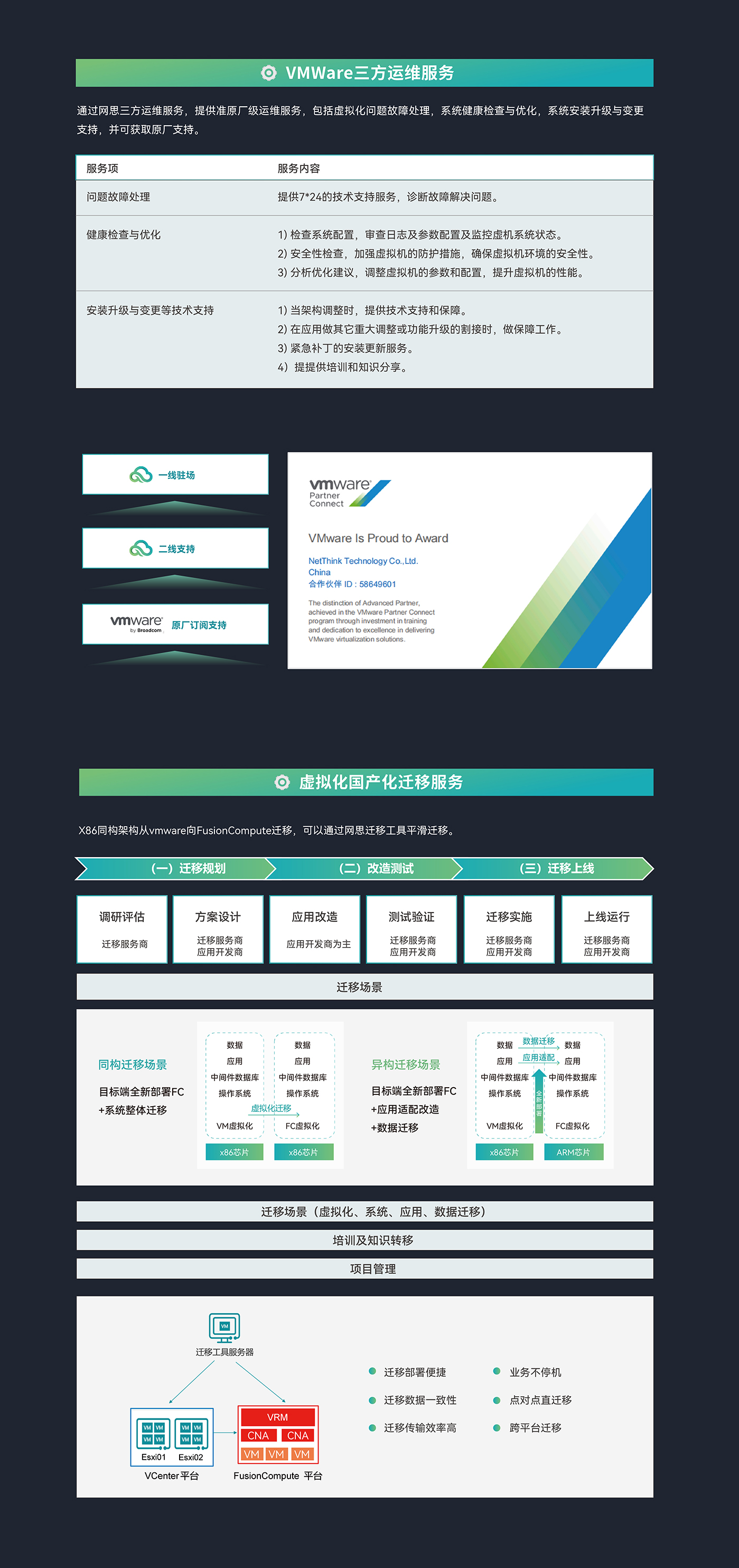 乐动在线官网作为VMWare产品服务授权代理商和服务商,具有专业的服务团队、服务方案和服务经验,提供VMware三方运维和国产化迁移替代服务。
